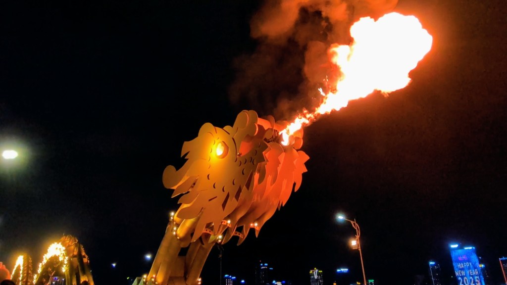 We flew from Hanoi to Da Nang, another city we had visited previously, however only briefly. This time we stayed at the riverside for three nights in Wink Hotel Danang Center. It was a comfortable hotel that is styled a bit like an Ibis or Ibis Styles. It cost us AU$55 per night. We spent a lot of time in a nice bar called Bamboo 2 Bar that is beside the river and close to the Dragon Bridge – a bridge over the Han River with a dragon structure that breathes fire and water every Friday, Saturday and Sunday night at 9pm.