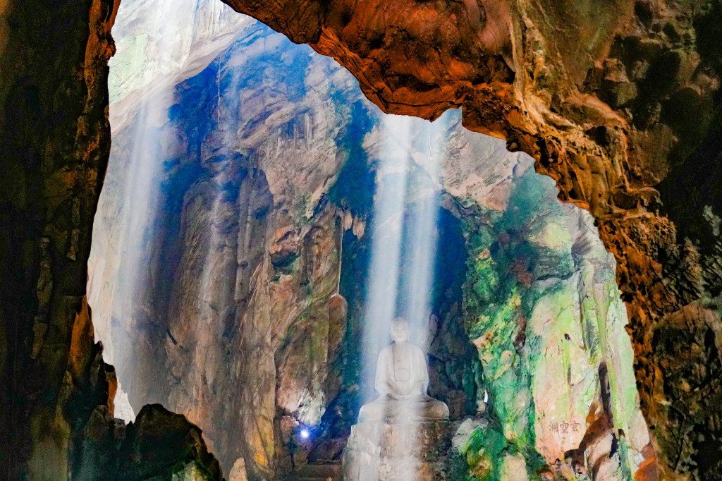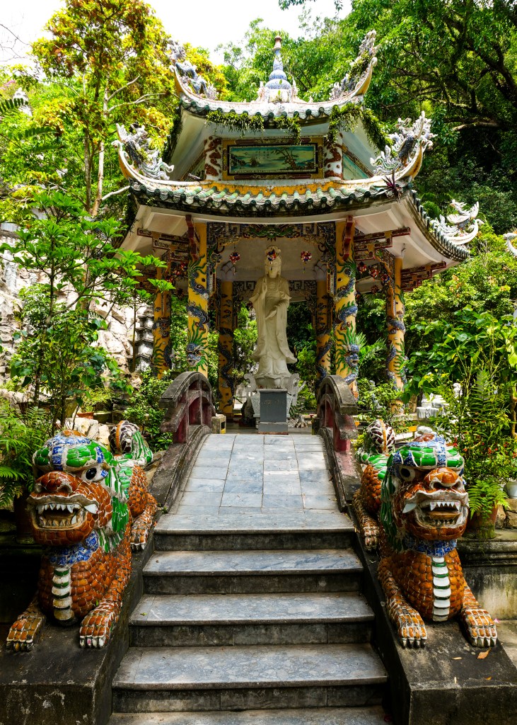 I waited for a day with cooler temperatures to go explore the Marble Mountains (40,000 VND = AUD $2.40). These outcrop of 5 limestone hills are named after the 5 elements of nature: metal, wood, water, fire and earth. Thuy Son, the Water Mountain, is the largest, highest and most visited of the Marble Mountains. There’s much to explore at the top, including various Buddhist sancturaries, ancient pagodas and mystical caves. If you climb to the highest peak you can take in panoramic views of Da Nang.