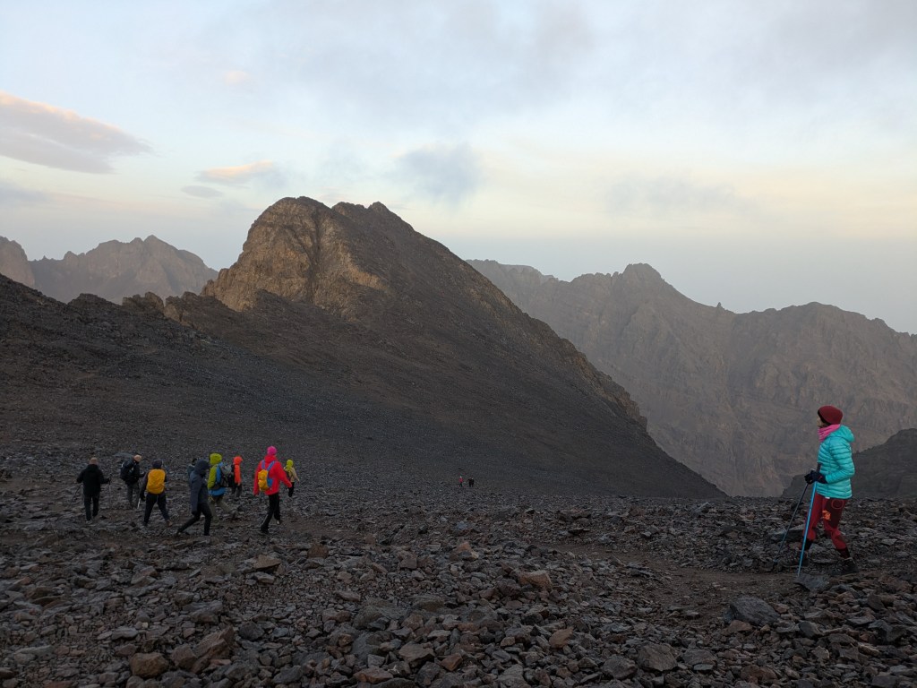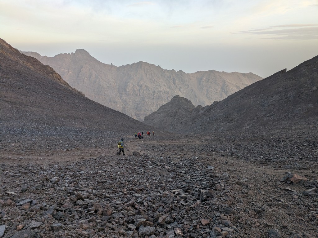 My alarm was set for 3:00AM, but it was difficult to sleep. There were constantly noises in the room from other people moving about. At 2:59AM, I dismissed my alarm, quietly packed my gear and went to breakfast. I had a few pieces of Moroccan bread with jam and Moroccan mint tea (amazing!), then put my boots on and hit the trail just before 4:00AM.