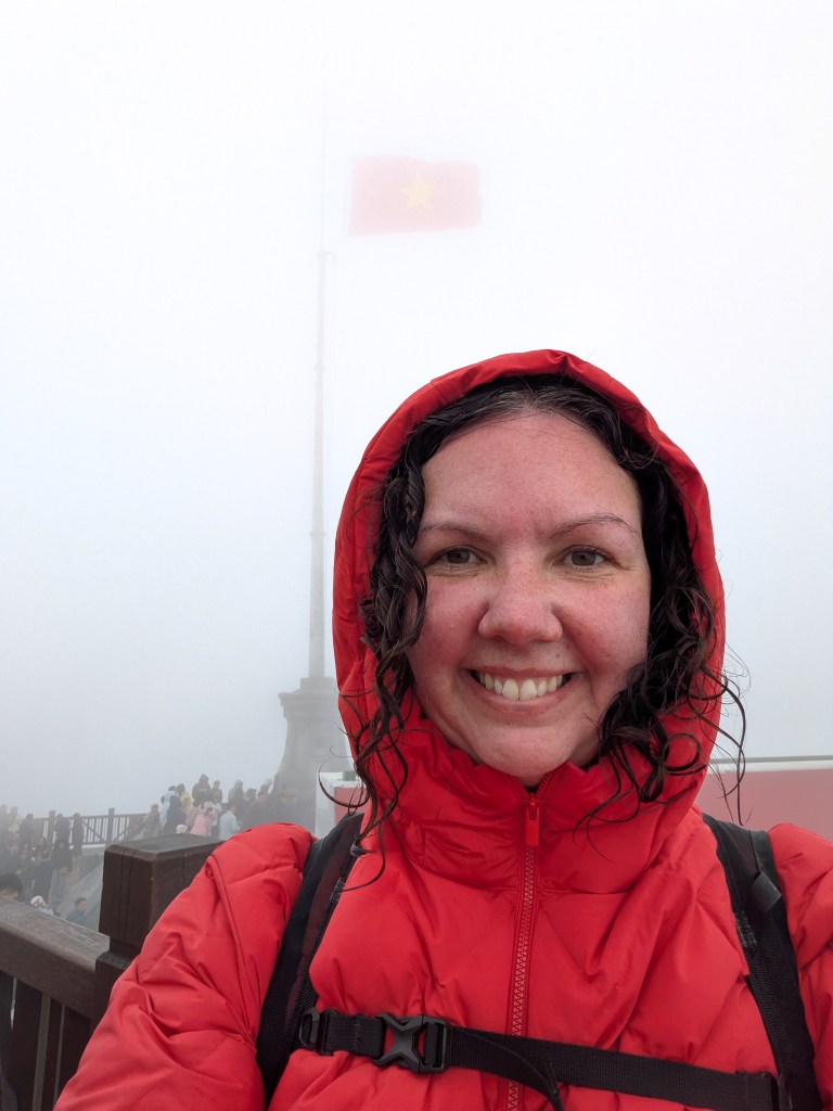 After lunch, Bernii decided to forge ahead with the journey to Fansipan summit despite the ominous warnings from the lady at the ticket counter. She began the trip at 1PM at the Sun Plaza station near the town square and took a short and pleasant train trip to the cable car station. So far so good, there were no crowds. Things were looking good until she reached the first of 3 long lines to get on the cable car. After an hour an a half of being herded through endless snake queues, she was finally aboard a gondola, enjoying the longest non-stop cable car ride in the world (6.3km). The ride took 15 minutes to reach the top of Mount Fansipan, but there was a further 600 windy and misty steps to reach the summit. As advised, it was indeed very busy and very cloudy at the very top, but definitely still worth it to stand atop the ‘Roof of Indochina”.