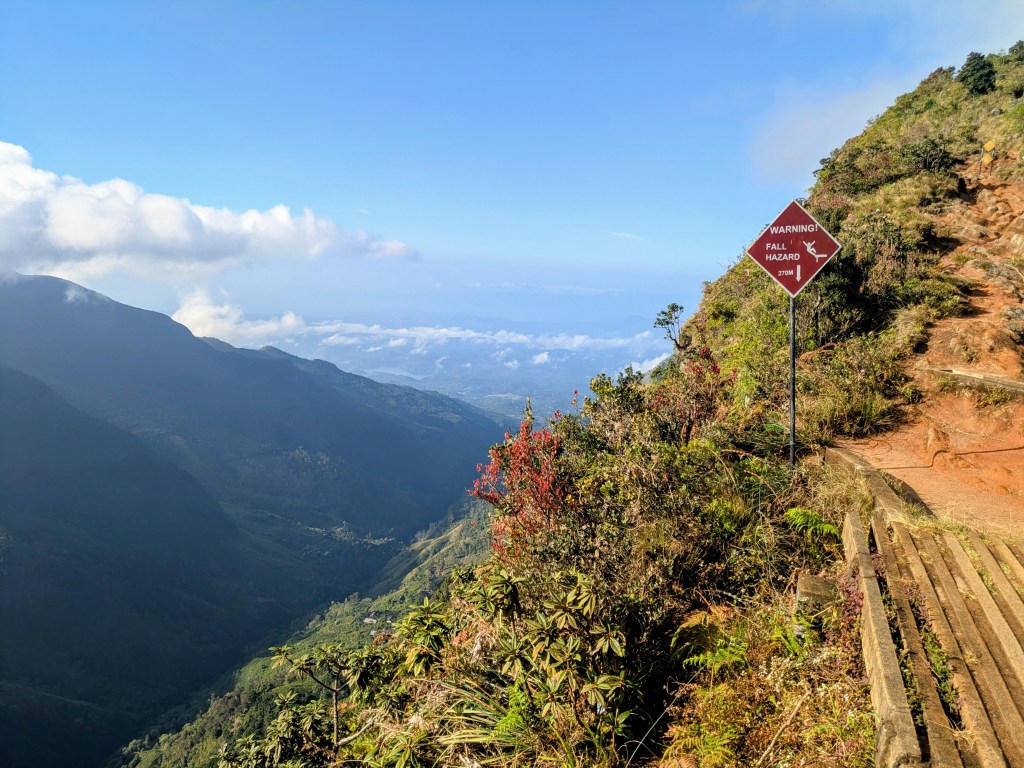 The following morning I woke at 4:30AM to catch a van to the Horton Plains National Park where I hiked the 8.5km circular trail, visiting Baker’s Falls, Mini World’s End lookout and the World’s End lookout – a 870m sheer drop!