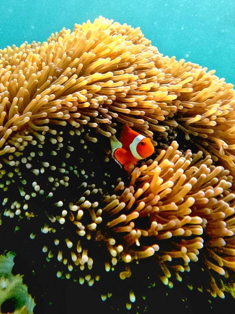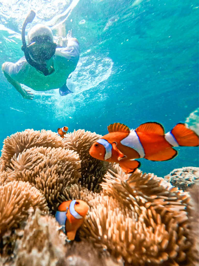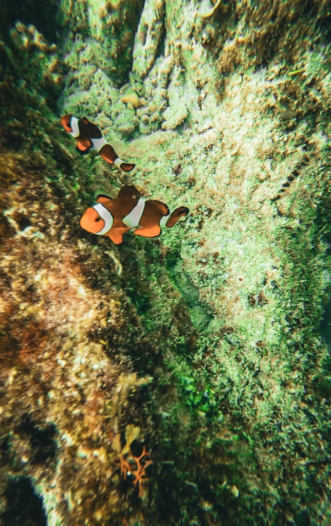 The next day we went out on the most beautiful turquoise water for an island hopping adventure. In the morning, we stopped at 2 different reefs to snorkel. There were clownfish (Nemo), blue tang fish (Dory), friendly turtles, angelfish, parrotfish, puffer fish, starfish, and so many other varieties of fish. Thankfully there were no sharks or jellyfish.