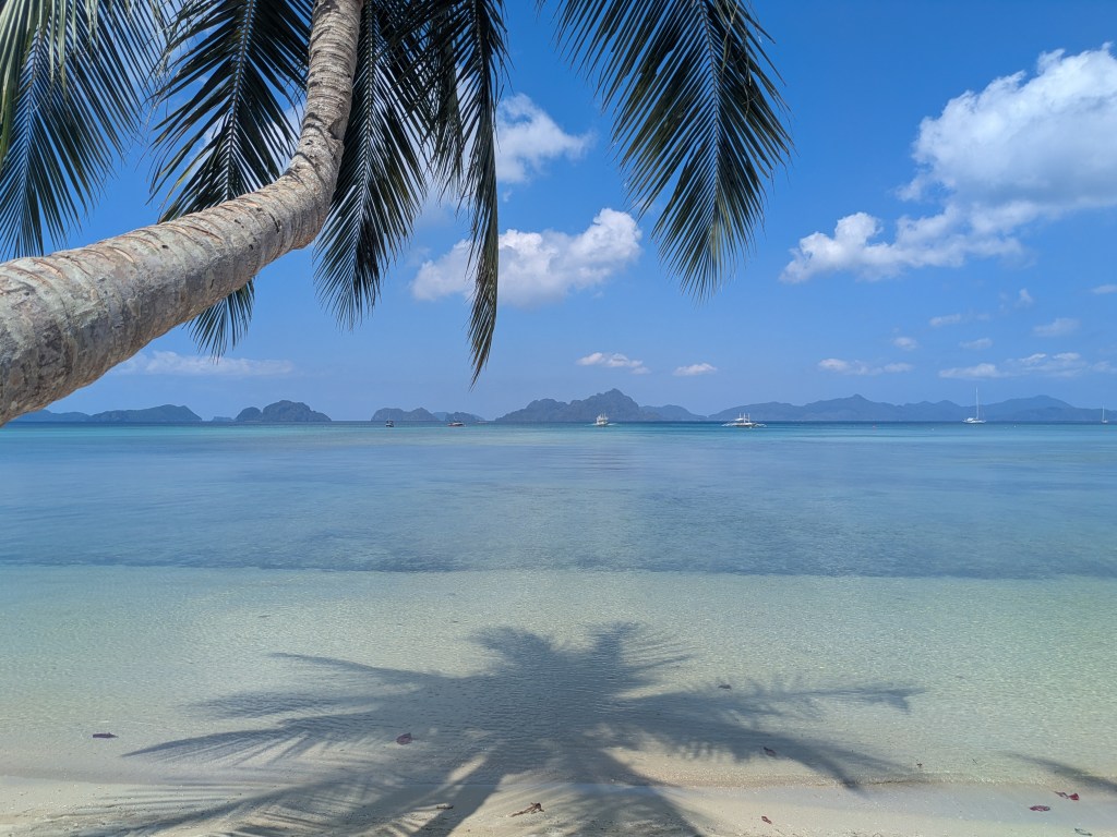 Everywhere we looked, the scenery was glorious and we were pinching ourselves to prove we were really there and not dreaming. Port Barton didn’t seem to be overrun with tourists. It definitely felt like there could and should have been more boats out and about, but we realised there were probably fewer tourists due to a lot of flights being cancelled through the Middle East.
